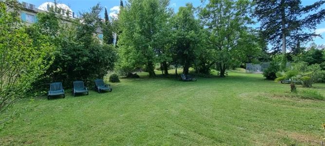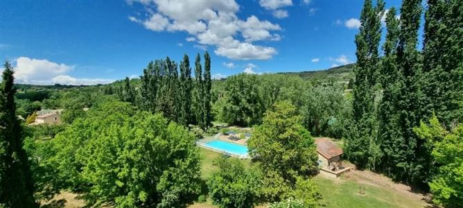 Auf einem bewaldeten Grundstück von 5.317 m² erbaut, verfügt das Gebäude über 993 m² Nutzfläche mit großzügigen Volumen und bemerkenswertem Entwicklungspotenzial. Mehrere sonnenverwöhnte Terrassen, ein weitläufiges Untergeschoss, Garagen, ein Swimmingpool sowie der atemberaubende Panoramablick auf die umliegende Natur verleihen dem Ensemble eine besondere Ausstrahlung – ideal für die Umsetzung eines Hotelprojekts, eines hochwertigen Gästehauses, einer exklusiven Zweitresidenz oder eines außergewöhnlichen Familienanwesens.